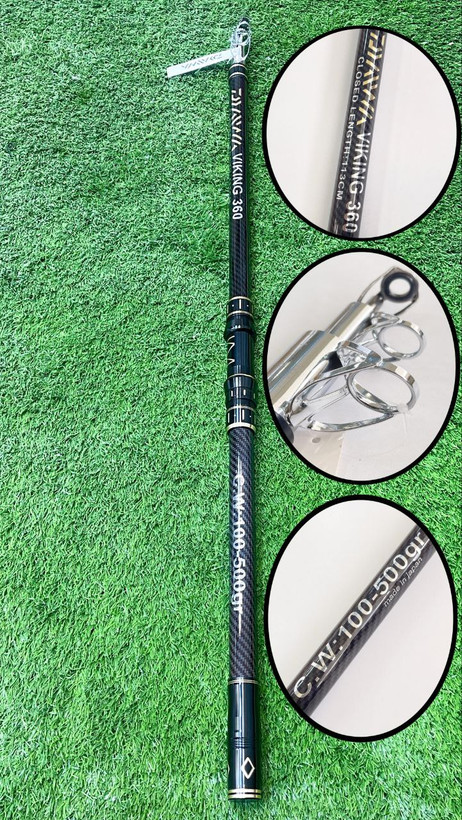 چوب دسته عصایی وایکینگ جنس از کربن مشبک حلقه دوبل ترکیبی فلزی بسیار مقاوم وزن پرتاب :۱۰۰ تا ۵۰۰ گرم طول در حالت بسته 113 سانت و وزن 490 گرم جای چرخ قابلیت جابجایی و تنظیم دارد