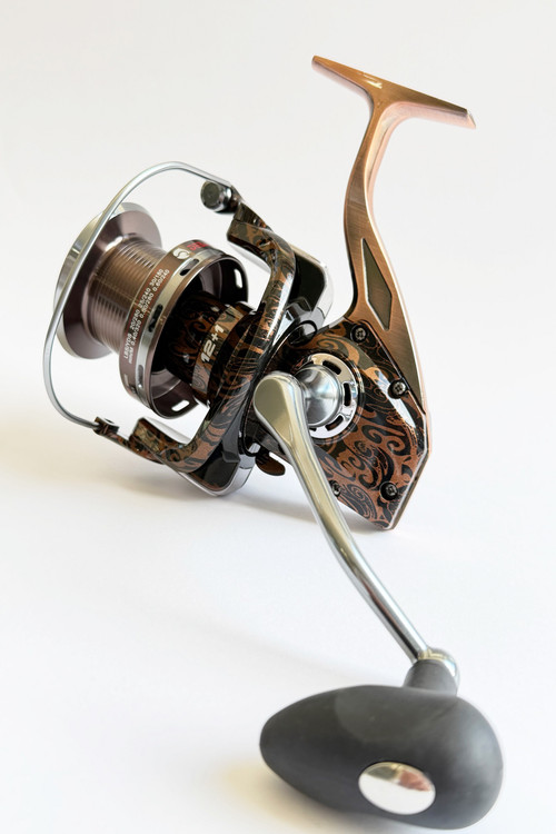 این چرخ دارای دسته ، پایه و اسپول فلزی میباشد دارای سیستم آنتی ریورس و همچنین کمان بسیار قدرتمند و بلبرینگی دارای 1+14 بلبرینگ میباشد. اجزای داخلی از فولاد زنگ نزن مخصوص آب شور و شیرین وزن چرخ 607 گرم نخگیری برای سایز 40: 320متر سایز 50: 280متر و سایز 60: 240متر نسبت دور به گردش دسته 4.1:1