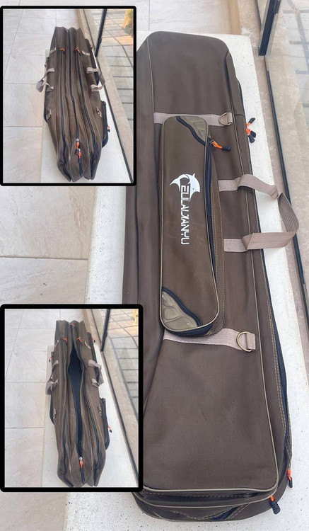 مخصوص مجموعه ست ماهیگیری دارای 3 زیپ از بالا و 3 جیب از بغل دوخت درجه یک جنس برزنت ارتفاع کیف 27 سانتیمتر